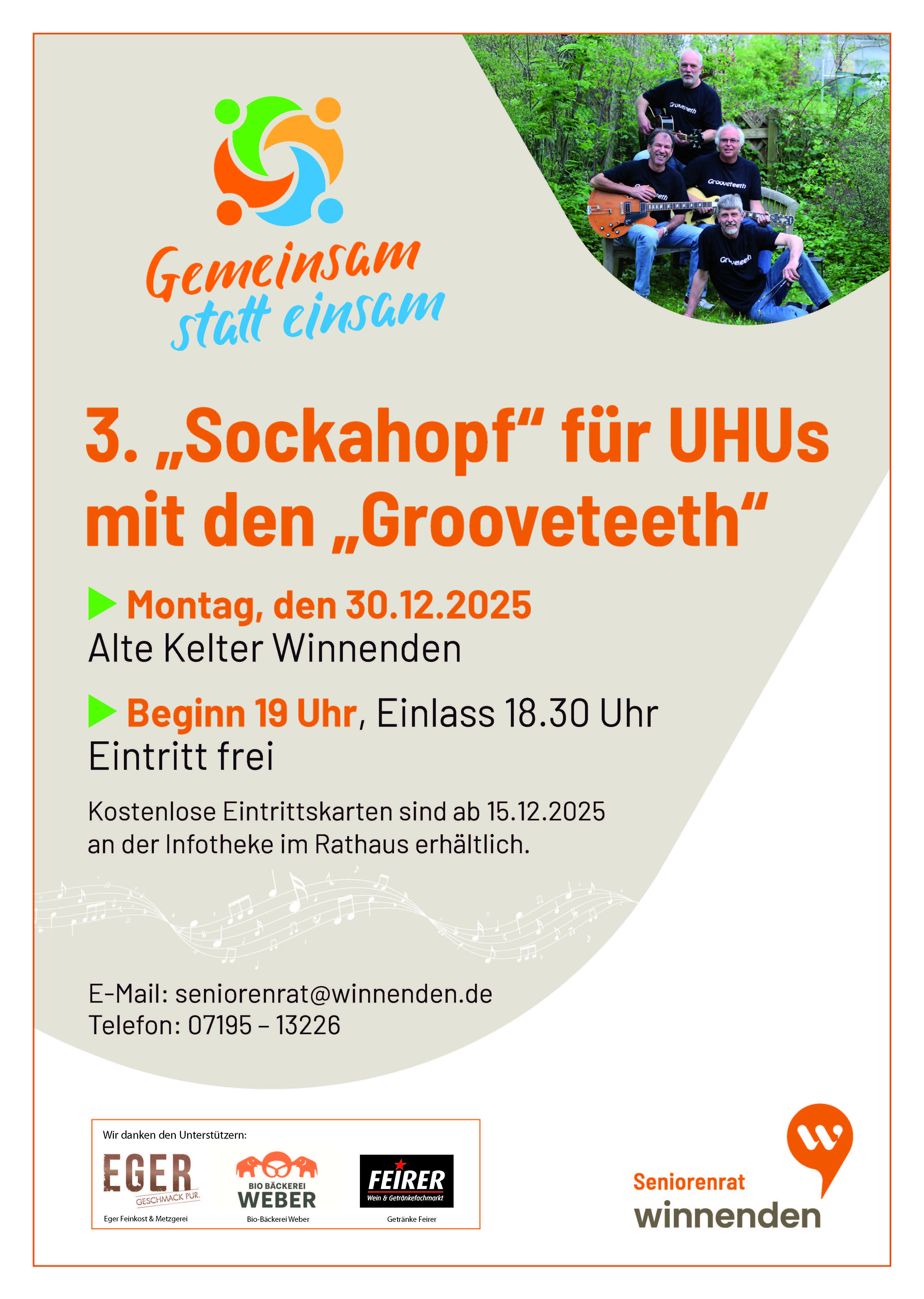 Die Alte Kelter in Winnenden öffnet am 30.12.2025 wieder ihre Türen zum Sockahopf für UHUs und wir sind wieder dabei.